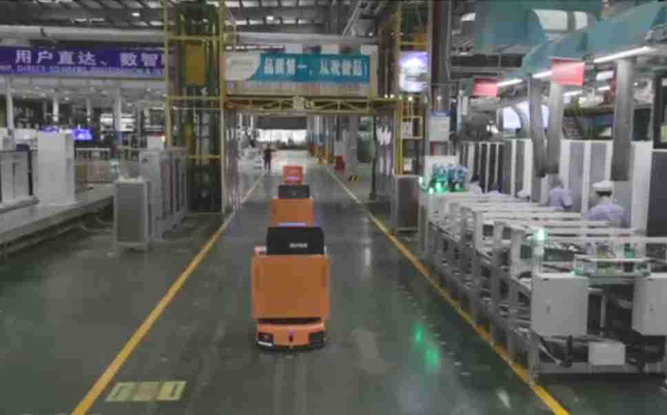 为车载冰箱物流配送打造的智能解决方案,,包含产中物流通过潜伏举升AMR搬运至线边,,,产后成品物流智能仓储,,流程包含产中物流智能齐套入库,,,线边安灯叫料AMR智能配送至线边,,,成品入库、、、、出库,,,,通过无人堆高车机器人,,,智能仓储管理替代人工作业管理,,实现更高存储、、、、更高效率、、、更具柔性化的解决方案。。。。